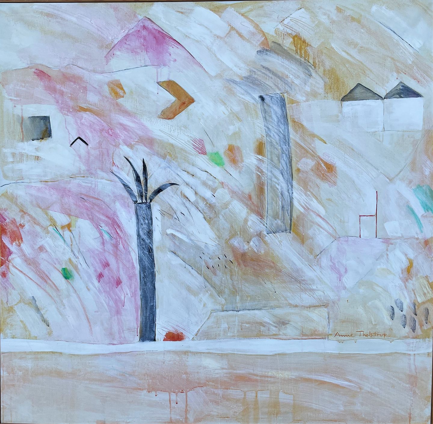 "Komposition" Olie maleri på lærred. Monteret i natur ramme.