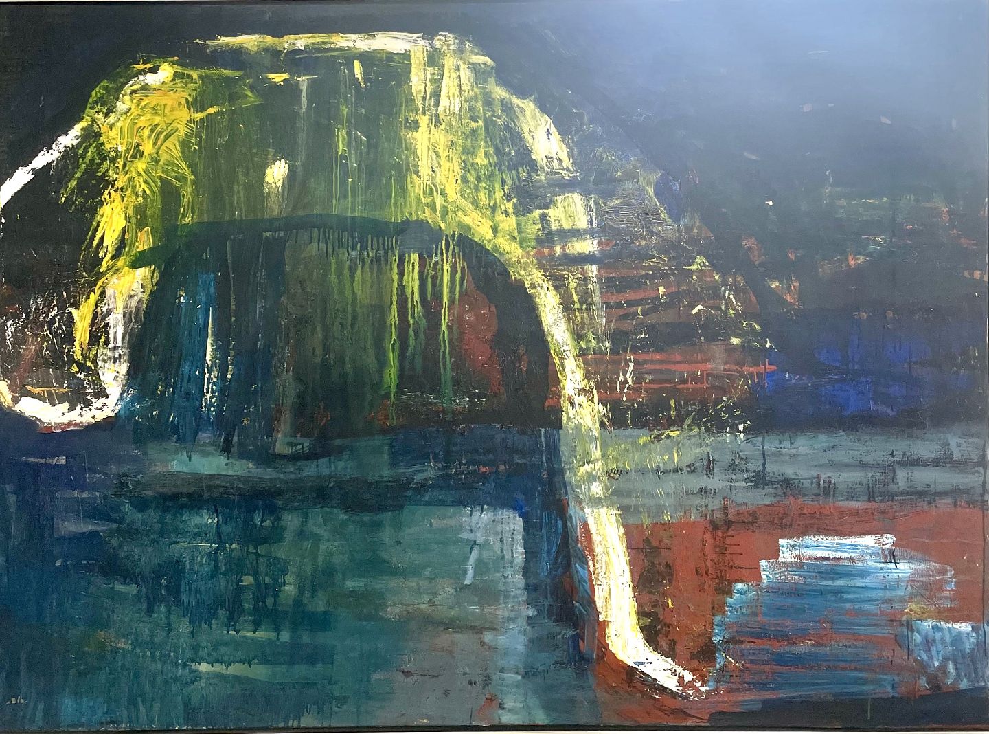"Psyko dramatisk landskab" Olie maleri i kraftig sølv svæveramme.