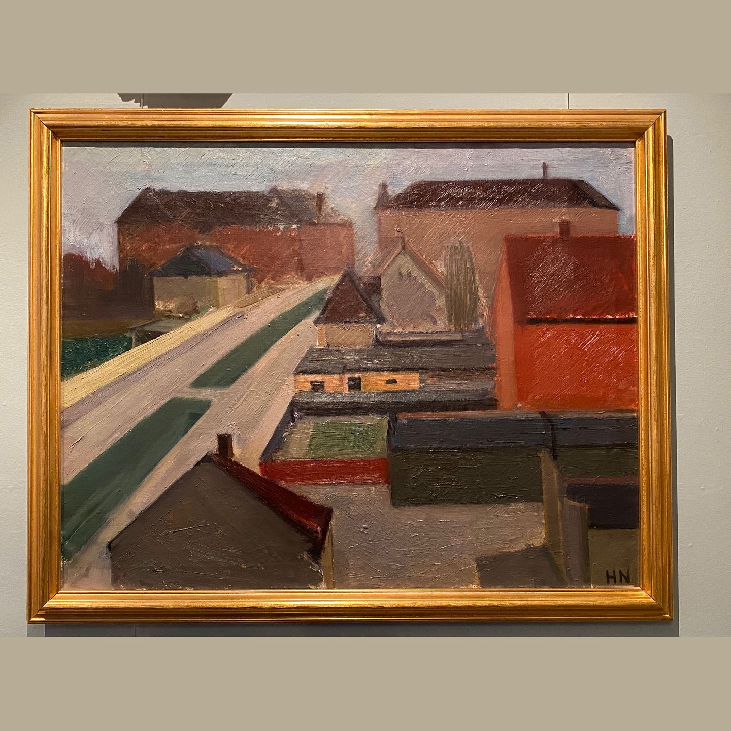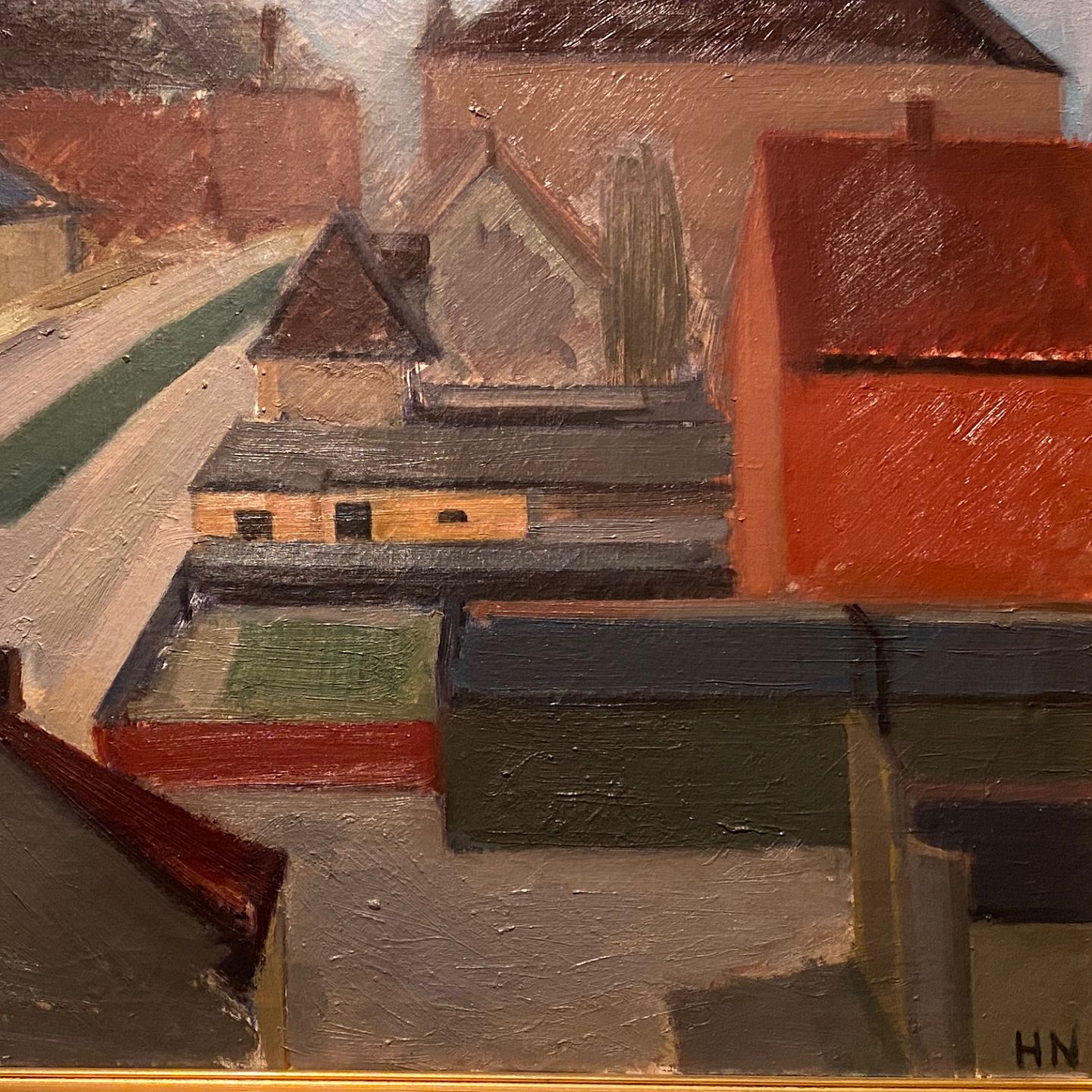 Søren Hjort-Nielsen , oliemaleri signeret HN. Parti fra Jagtvej