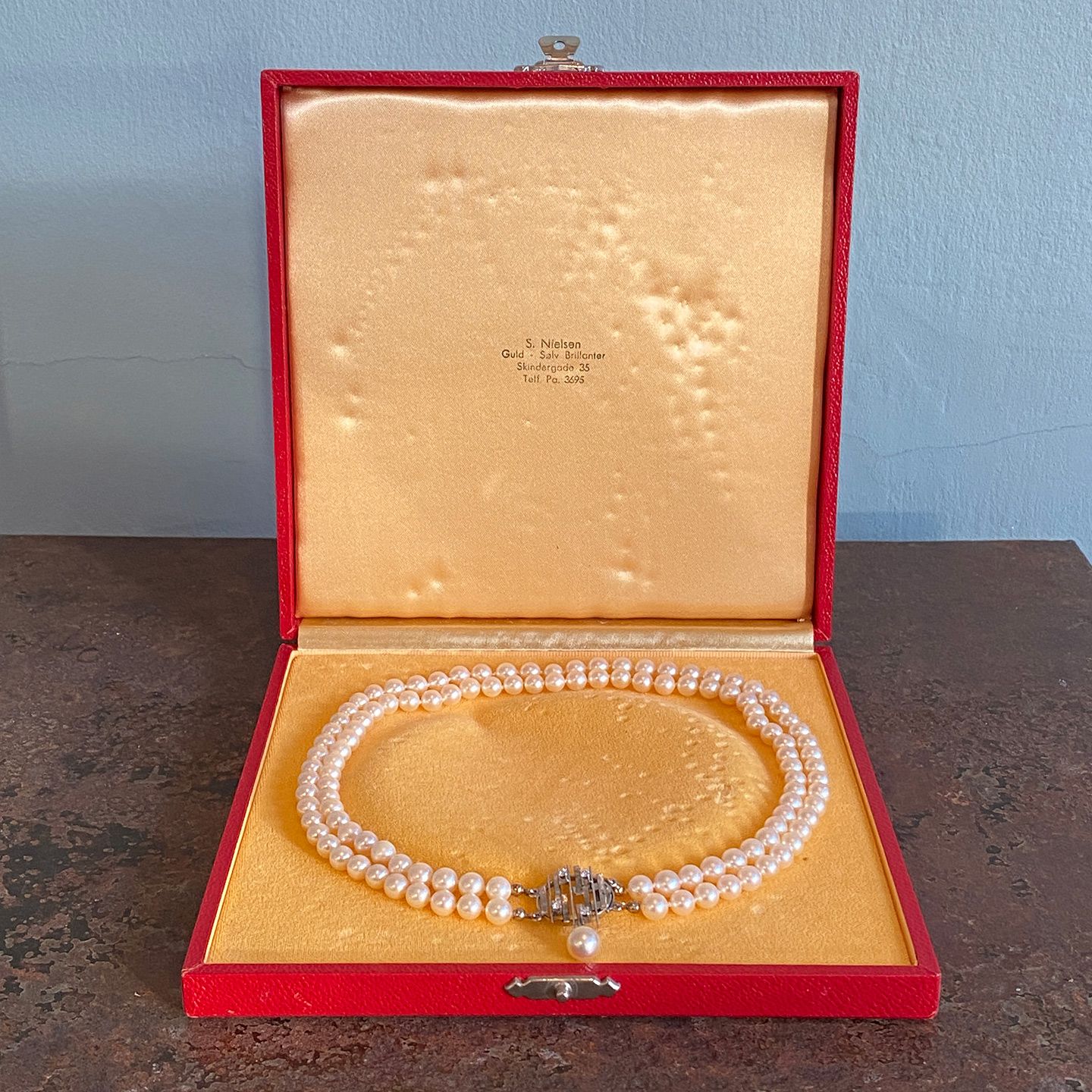 Æske fra S. Nielsen Guld - Sølv Brillianter Skindergade 35. Pa. 3695