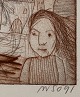 William Skotte Olsen. Erasure in colors. Signed WSO91. silverframe whit passerpartout.