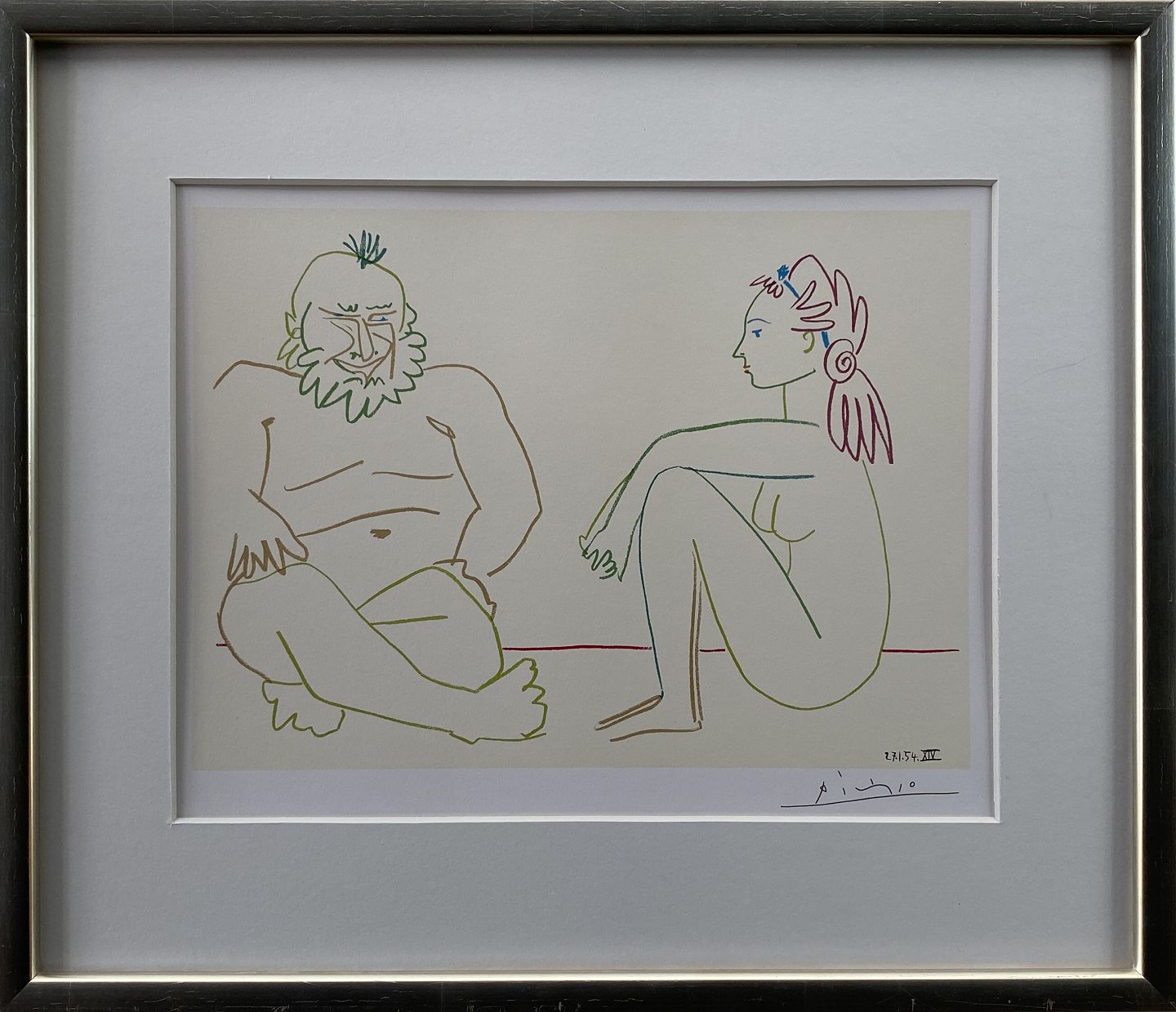 Pablo Picasso Litografi med passerpartout i sort ramme.
