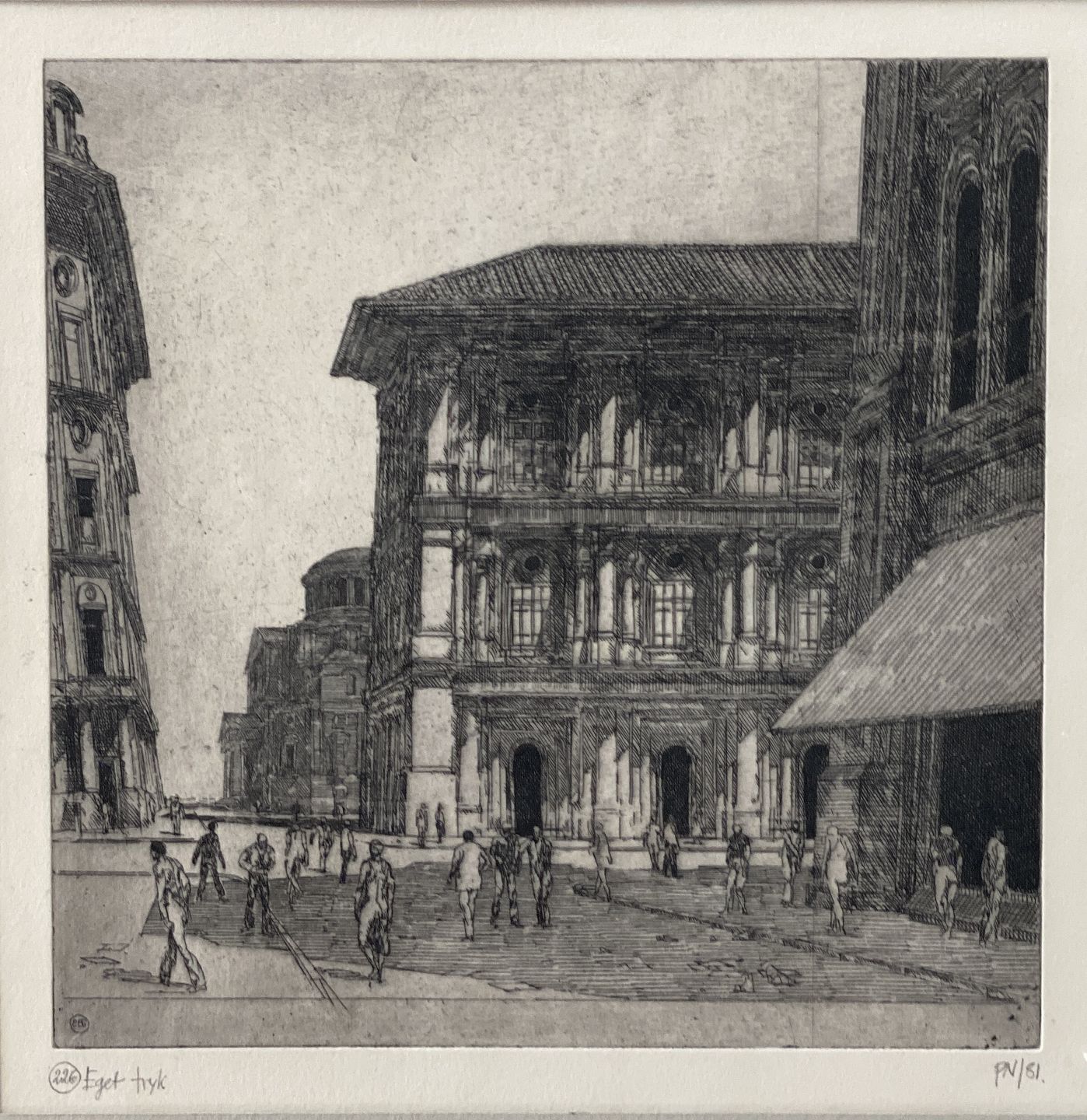 Mål: 40,5 x 46 cm. (21 x 21 cm). Signeret PN/81 samt 226 Eget tryk.