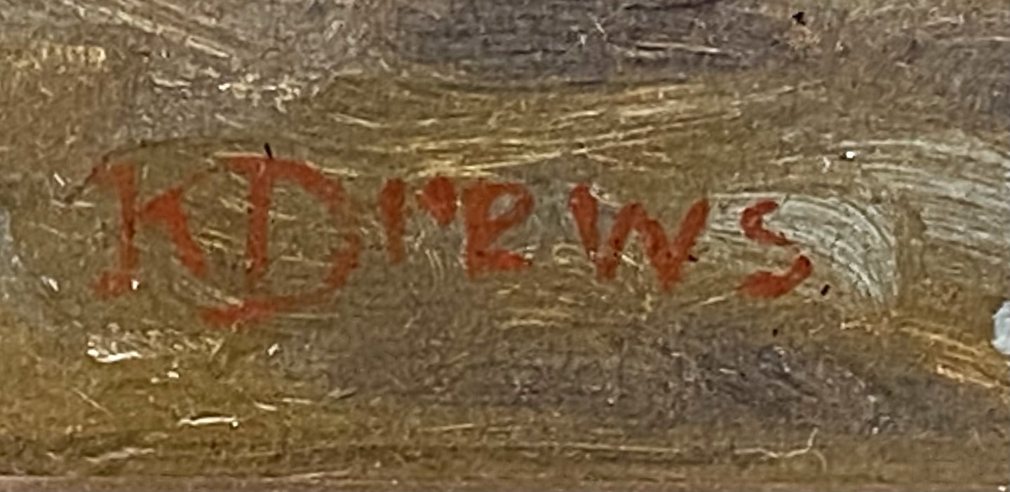 Kai Drews oliemaleri i guldramme med motiv fra Kalkbrænderihavnen.
