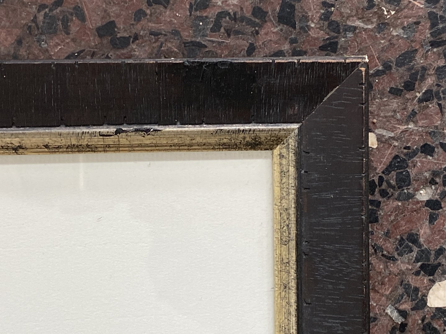 Akvarel på håndgjort papir opsat svævende med en meget kraftig paspartout og indrammet i en smuk sortbejset træramme med håndforsølvet kant. Indramningen er udført i Holland stempel bagpå.