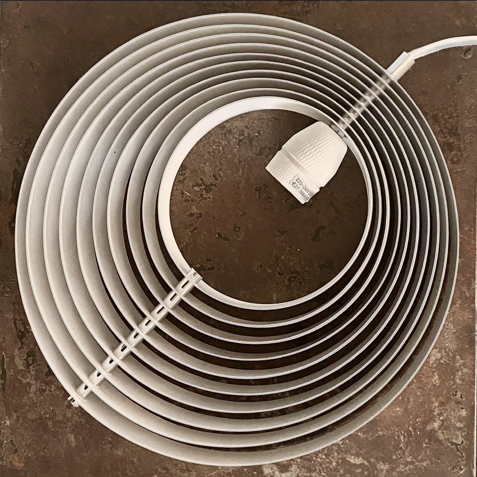 Varenummer: 624120Verner Panton Pendel (The Moonlamp) udført af hvidlakeret metal. Formgivet i 1960, fremstillet hos Frandsen Lighting.