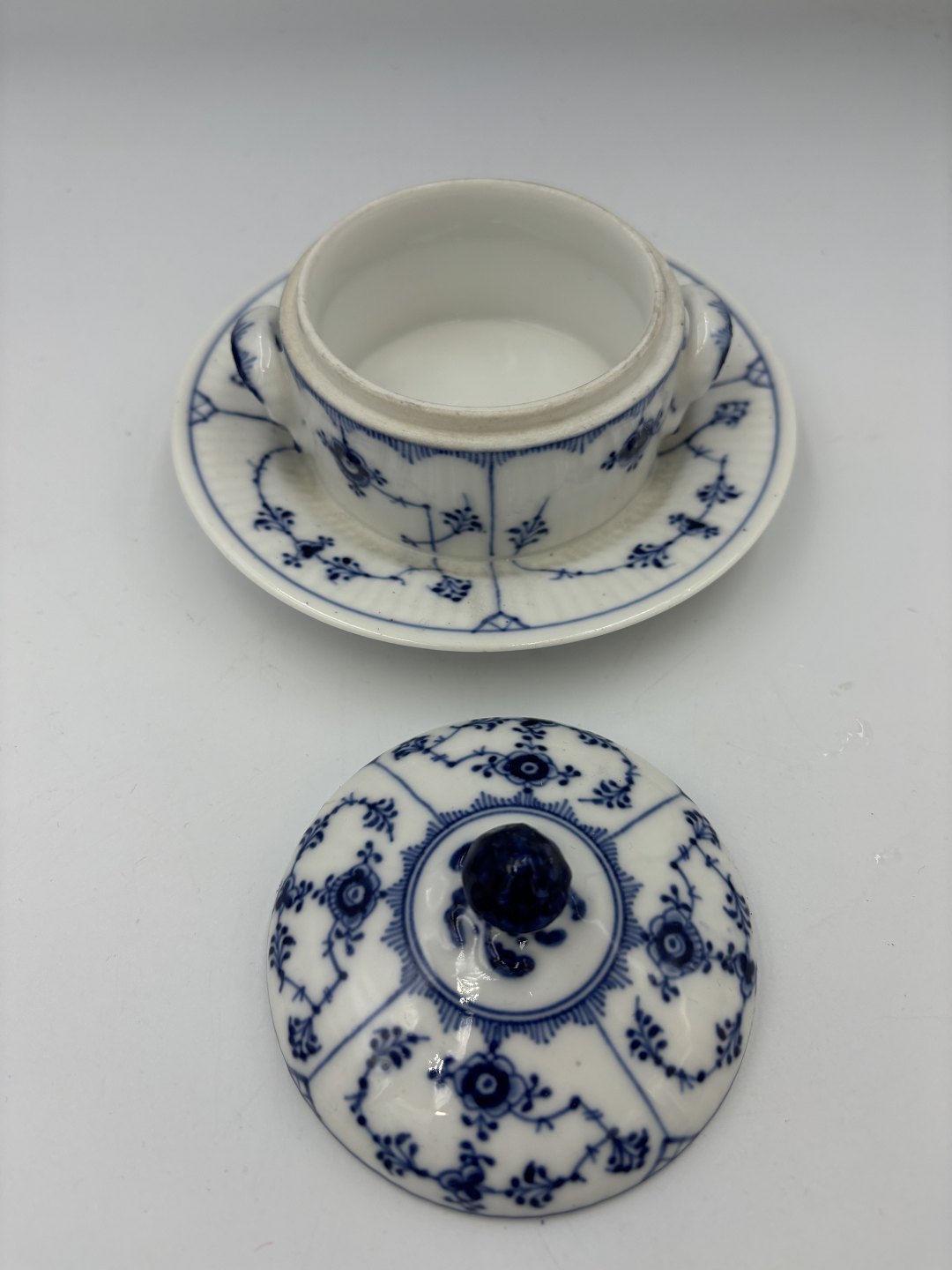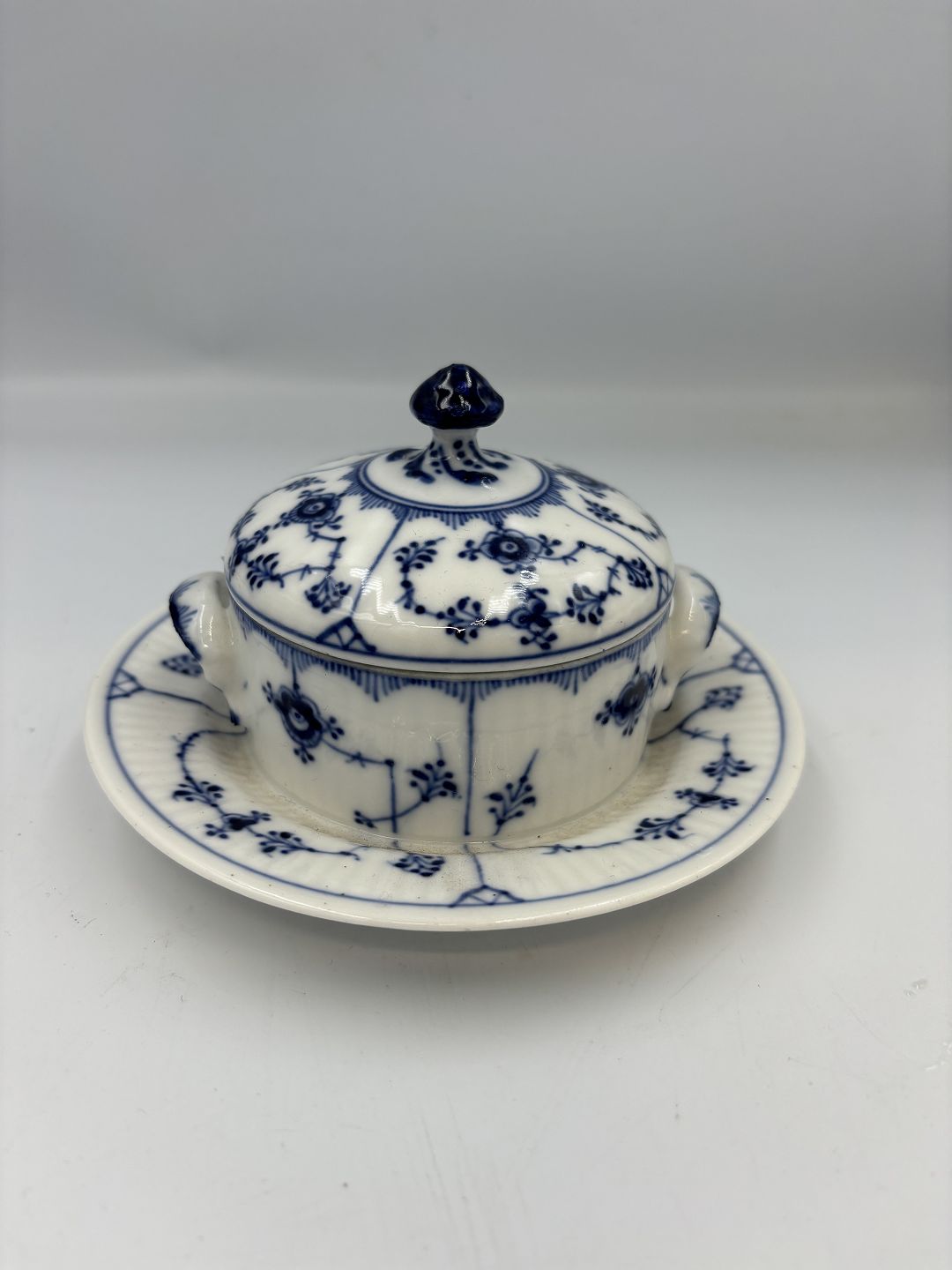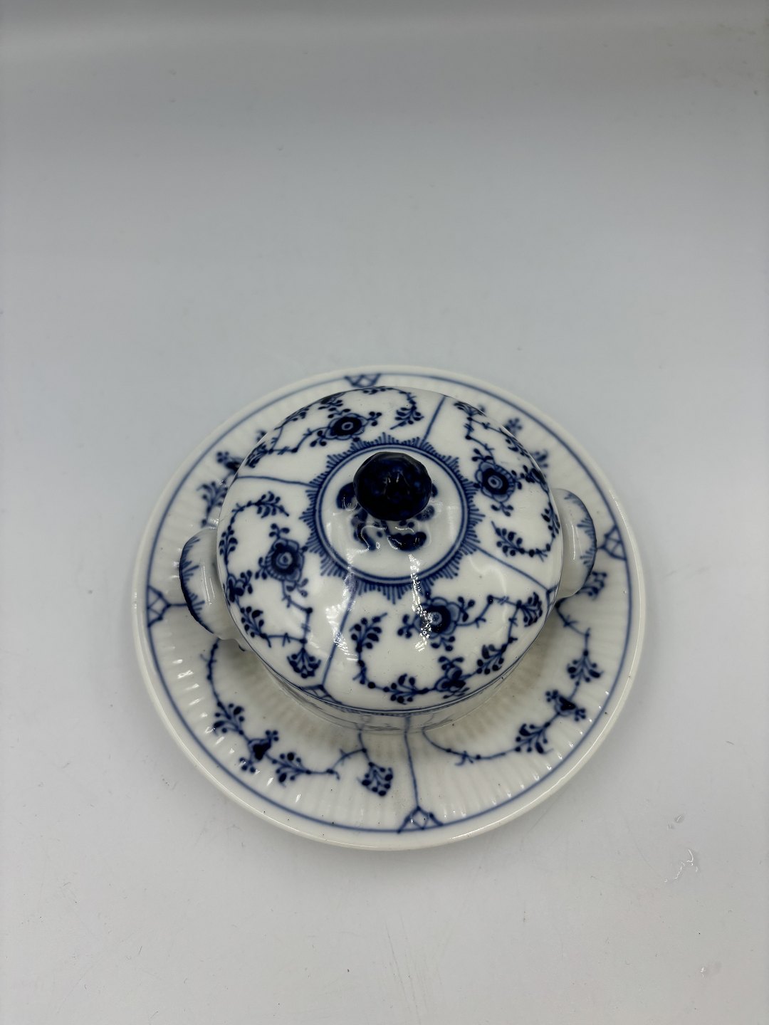 Royal Copenhagen Musselmalet riflet smørskål på fast underskål