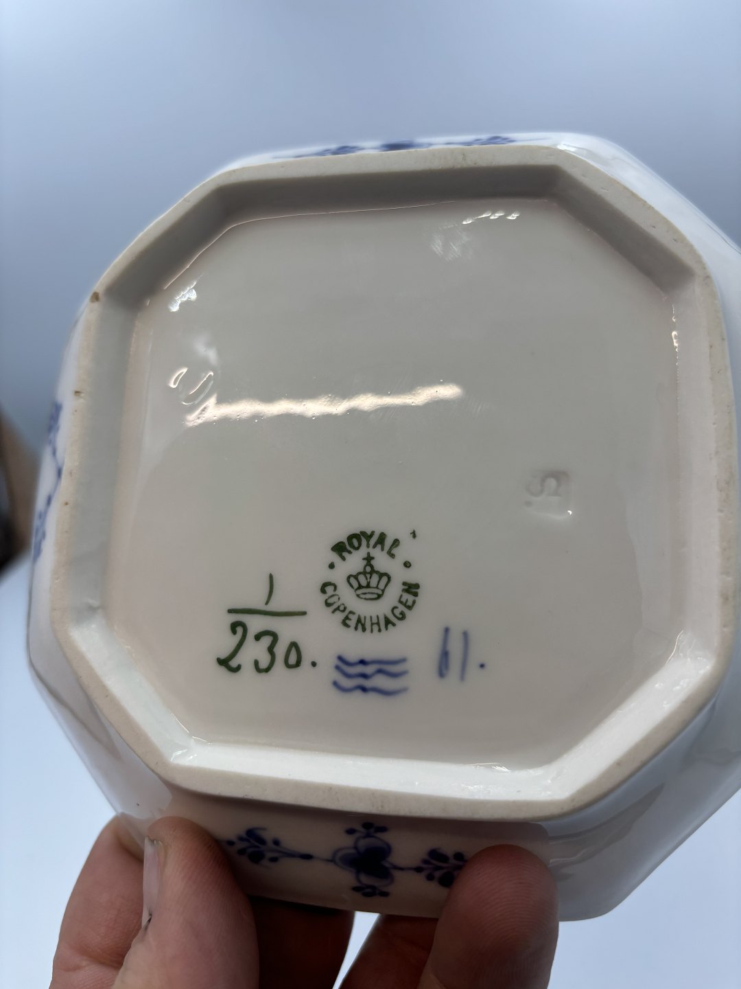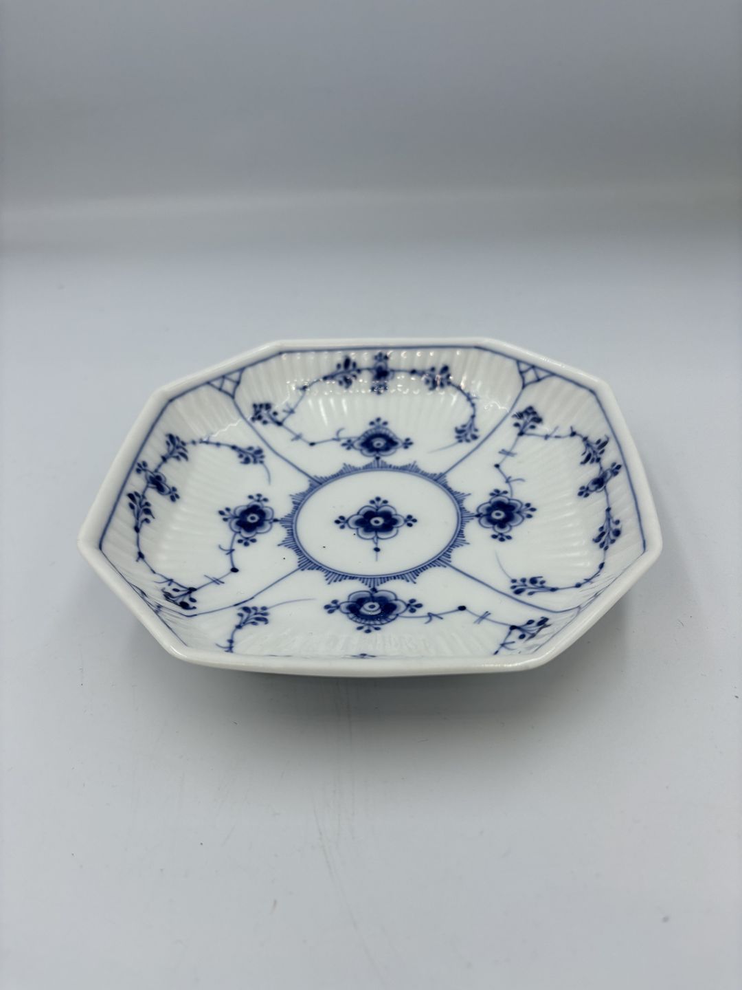 Royal Copenhagen Riflet musselmalet Ottekantet fad
