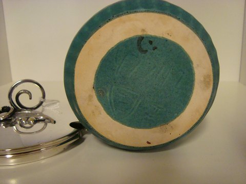 Marmeladekrukke med sølvpletlåg, højde 8,5 cm