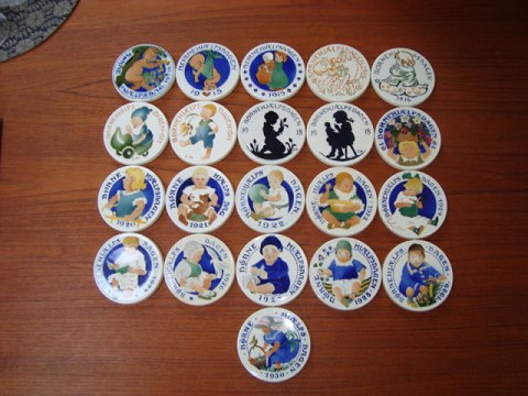 Aluminia Børnehjælpsplatter lavet fra 1909 - 1930. Alle i hel og fin stand. Årgang 1909 - 1913 koster kr. 450 Årg. 1909 og 1911 Årgang 1914 - 1930 koster kr. 250