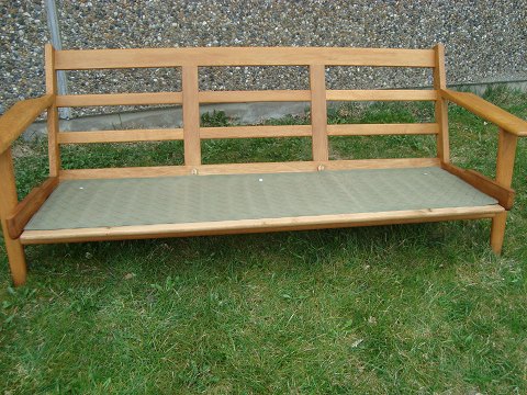 Tre prs.sofa i eg med blåt stof fra kvadrat, designet af Hans J. Wegner 1914 - 2007 for Getama model GE 290