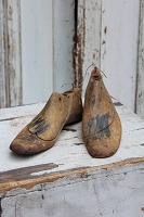 Decorative old wooden "clock" from a watchmaker's shop with old paint and a really nice patina.