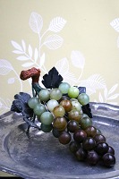 Decorative, antique bowling ball in wood with number inlaid in horn. . .