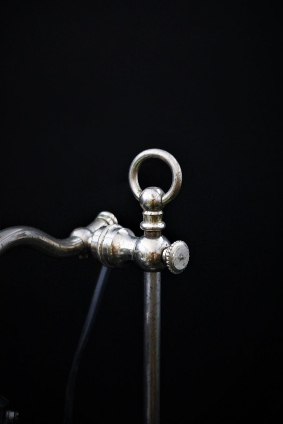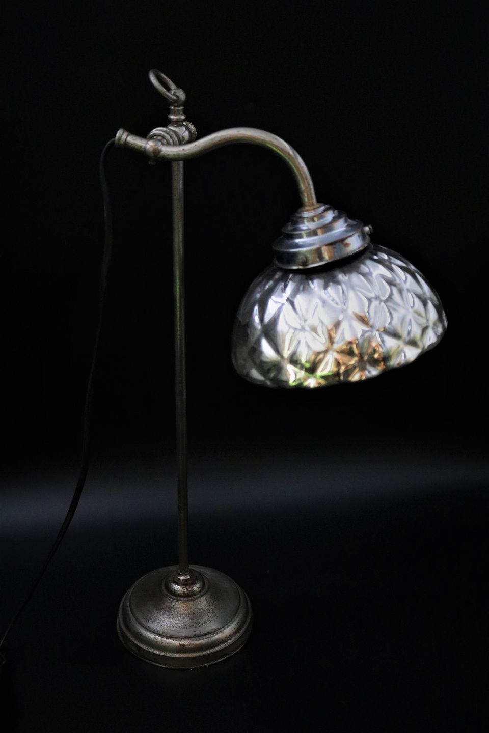 Gammel fransk Bureau bord lampe med original lampeskærm i vaflet fattigmandssølv med en rigtig fin patina.