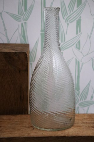 Fin , gammel fransk 1800 tals mundblæst vinkaraffel med slebet bladmotiv og fin prop. Højde: 36cm. Dia.:13cm.