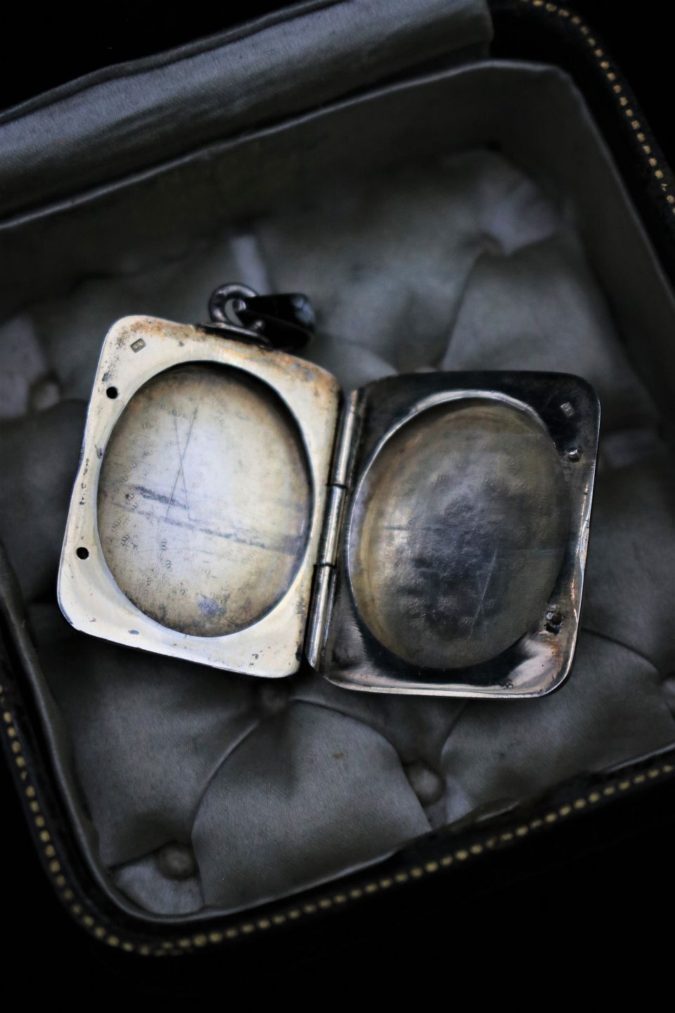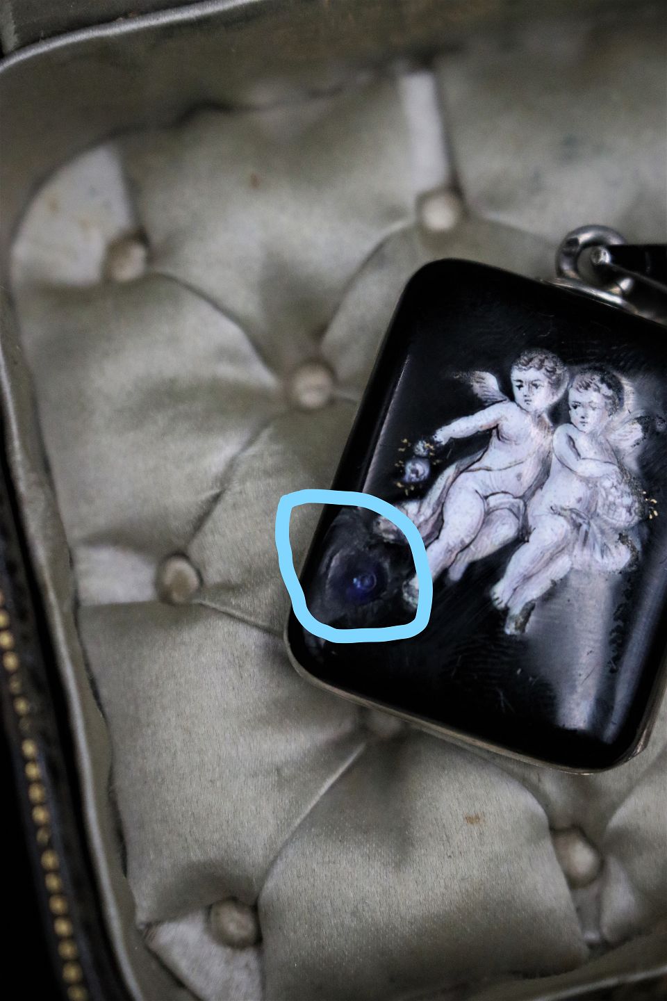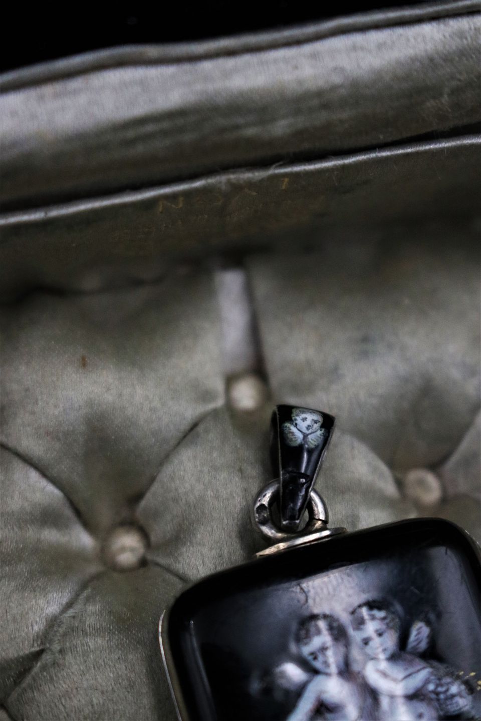 Old pendant, medallion in silver / enamel with little angels. 3,5x2,8cm. Has small enamel rejection!