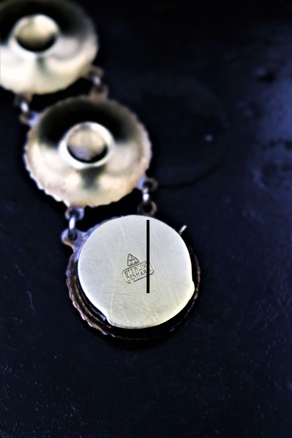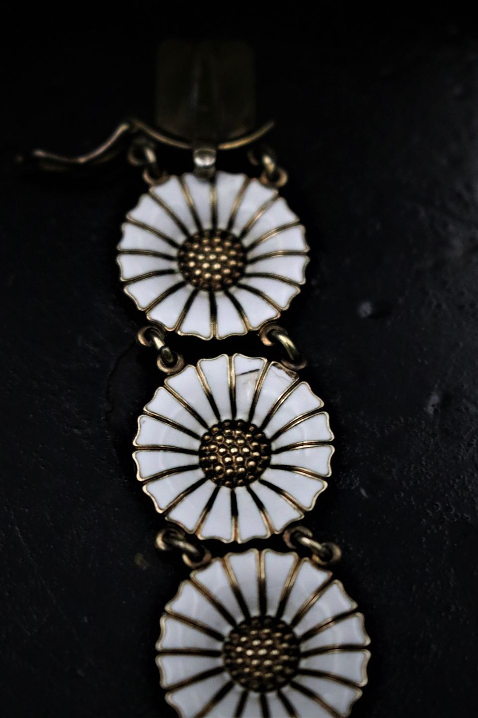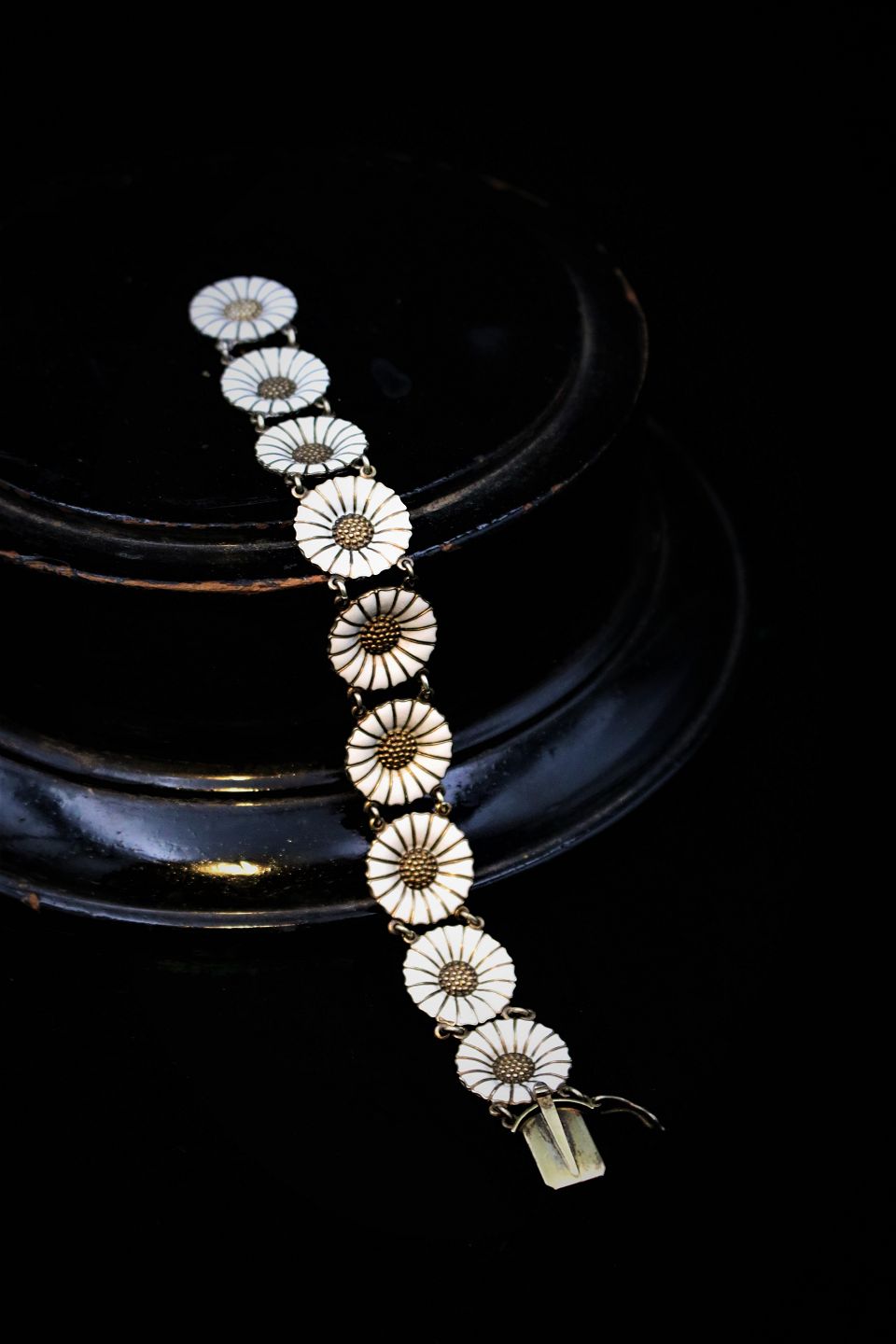 Old Marguerit / Daisy bracelet in sterling silver and white enamel from A. Michaelsen. Length: 18cm.