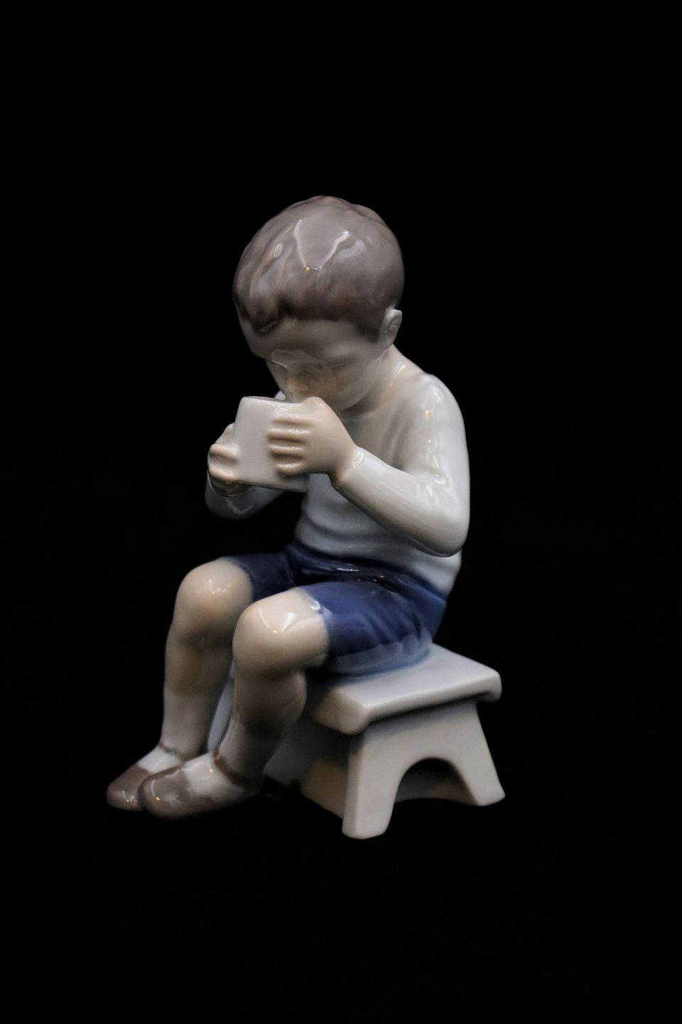 Bing & Grøndahl porcelænsfigur af lille dreng der drikker mælk.