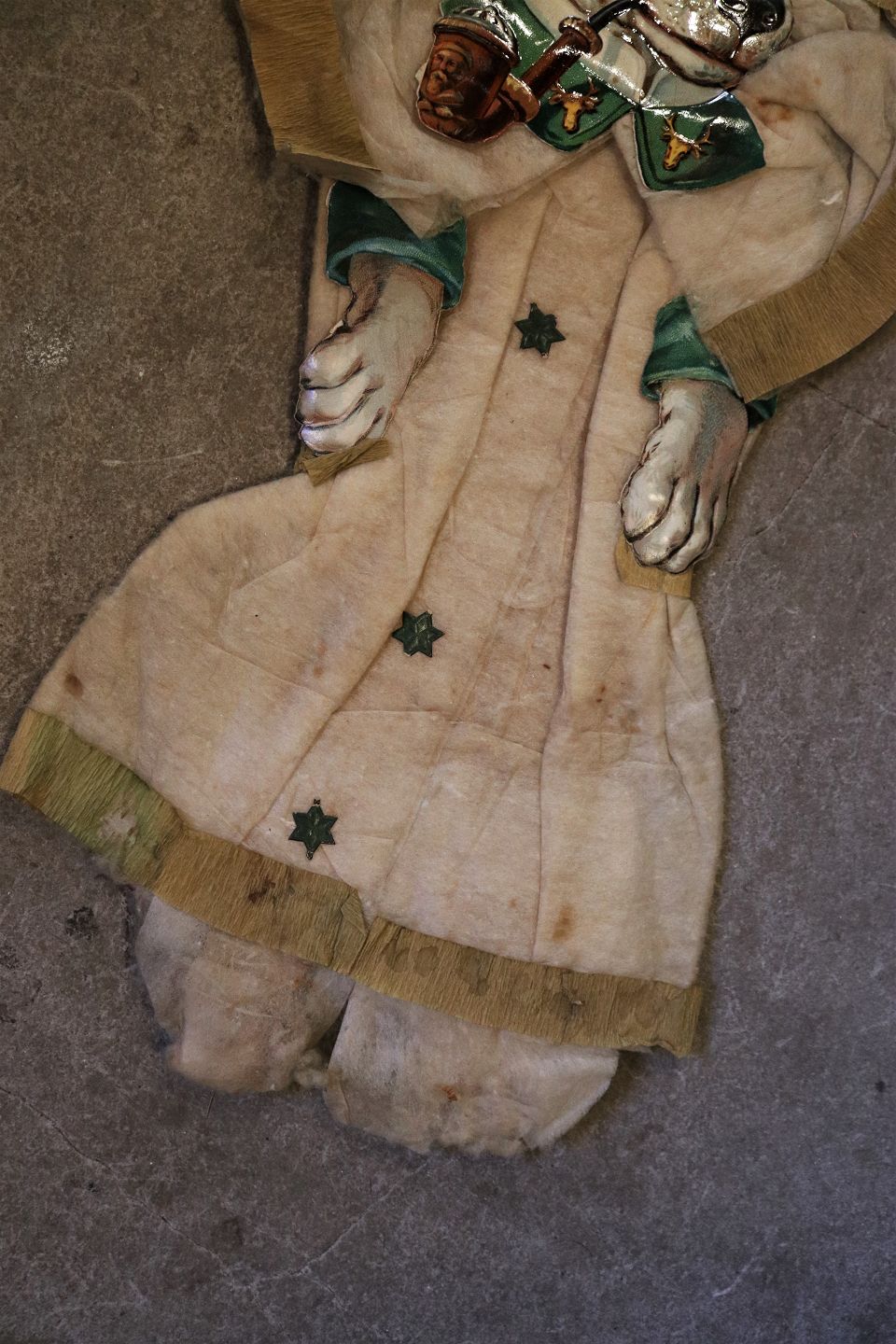 Gammelt julepynt i form af julehund i vat & glansbillede fra sidst i 1800 tallet. Højde : 45cm.