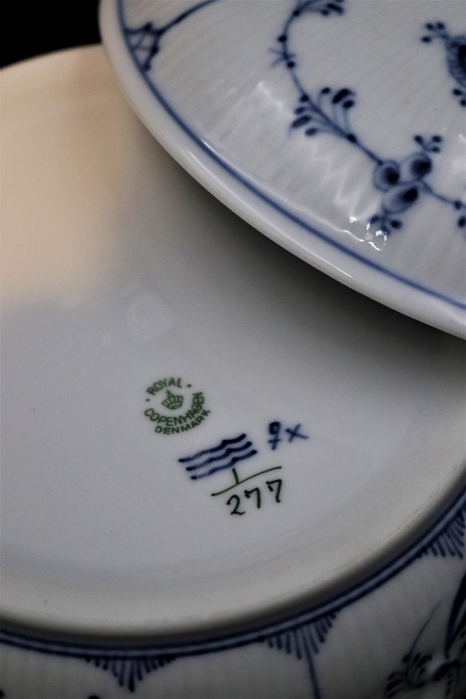 Royal Copenhagen Musselmalet Riflet rundt ragout fad / Lågfad. H:15cm. Diameter:21 cm. Dekorations nummer: 1/277. 2.sort.