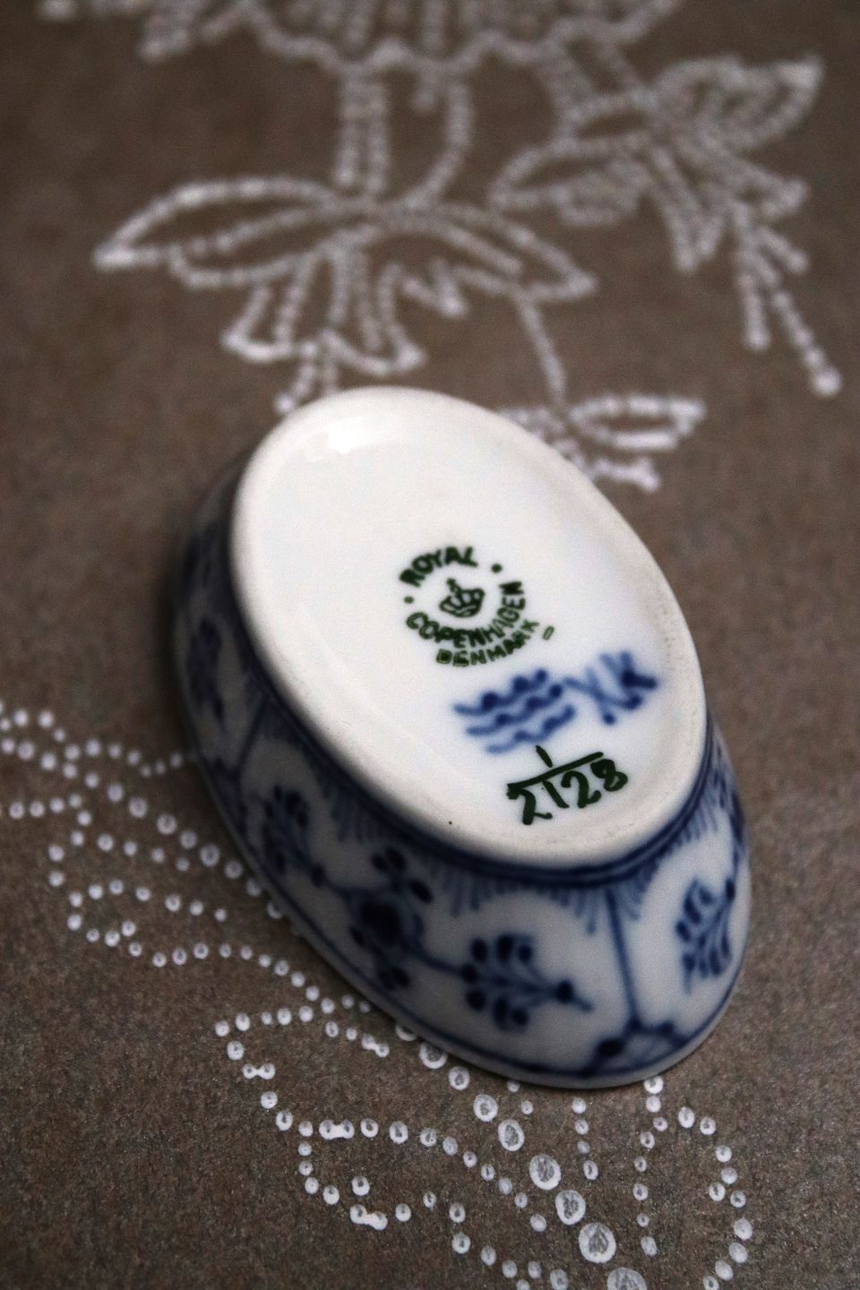 Royal Copenhagen Musselmalet Riflet ovalt saltkar.