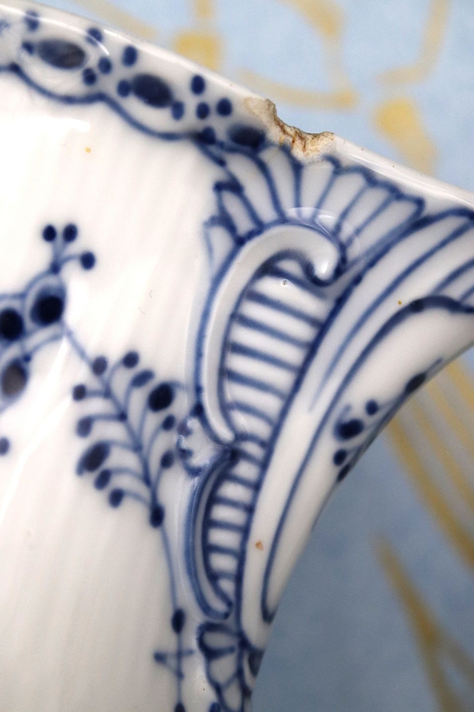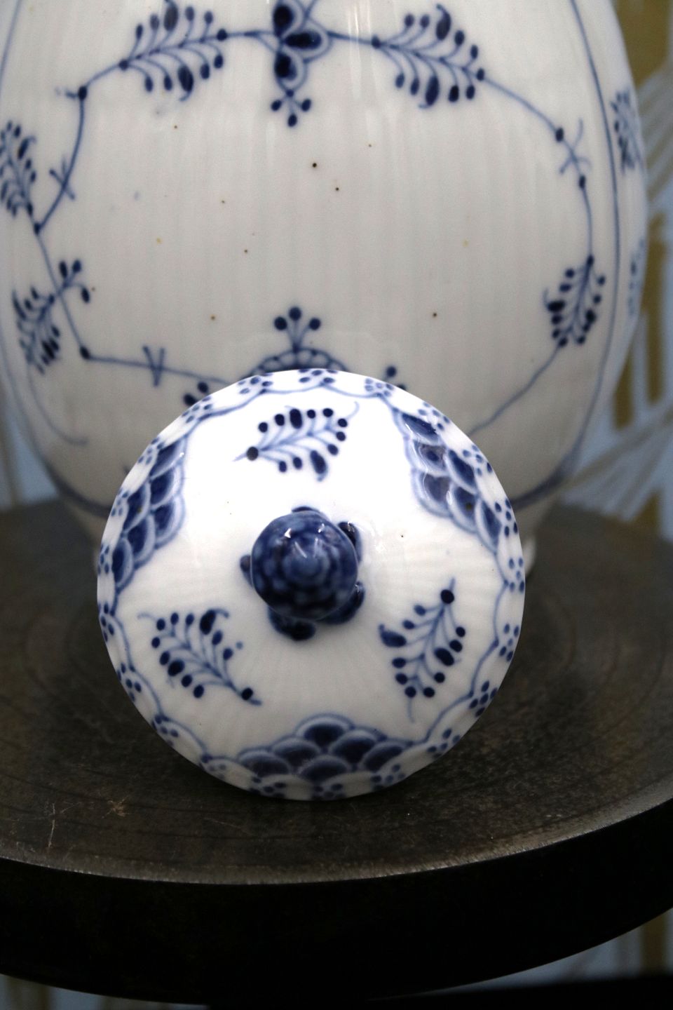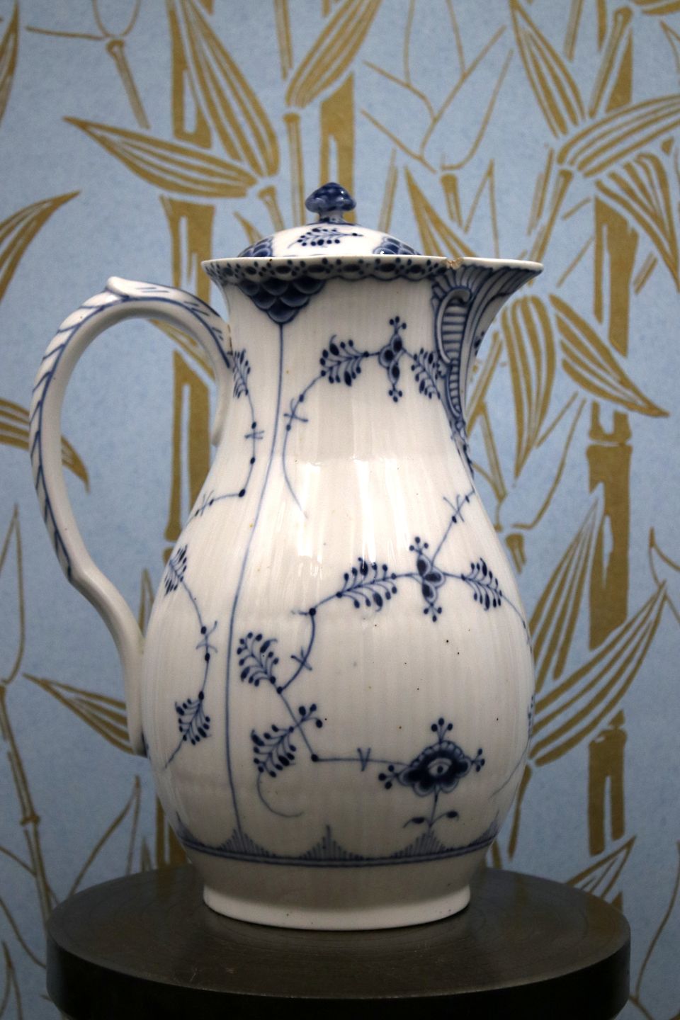 Rare Royal Copenhagen, Blue Fluted Half Lace Chocolate Jug. H:23cm. Decoration number: 1/507. 2nd grade. 1898-1923.