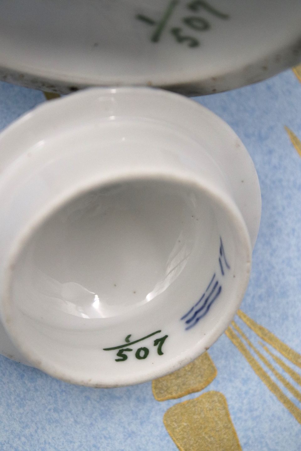 The pot has a chip at the pouring spout, the lid is completely intact so it is sold for the lid price.