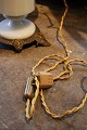 Er monteret med stof lampeskærm med blomster motiv , ny snoet guld stofledning , kontakt og afbryder. Højde med skærm : 70 cm. Lampeskærm dia.: 30cm. (H: 25cm.) Lampefod uden skærm H: 50cm.