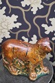 Antique Bornholm ceramic piggy bank in the shape of a tiger with old original painting from around 1900 with a fine patina. H: 14cm. L: 17cm.
