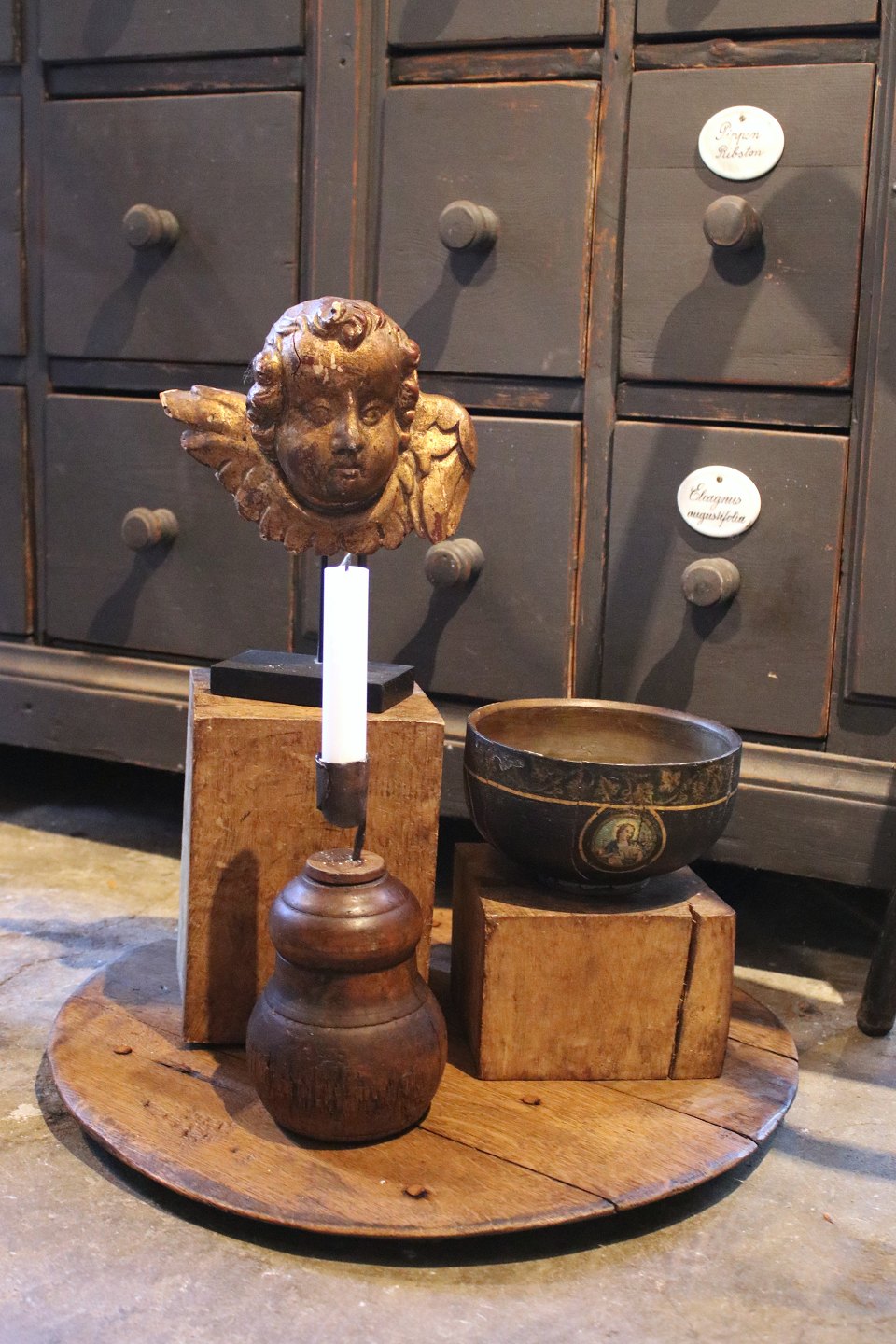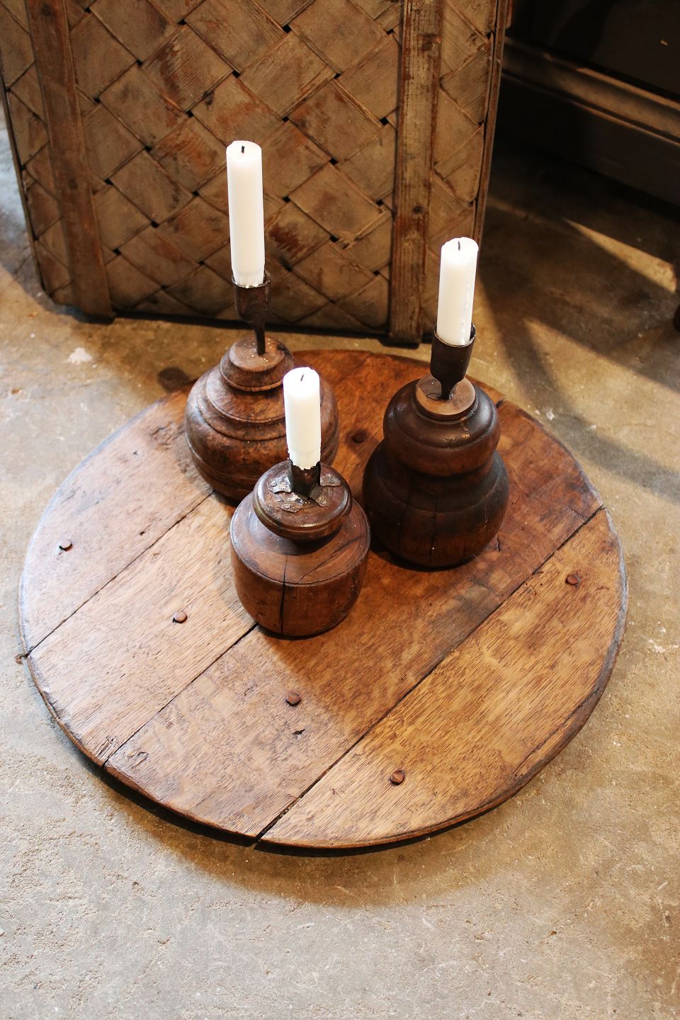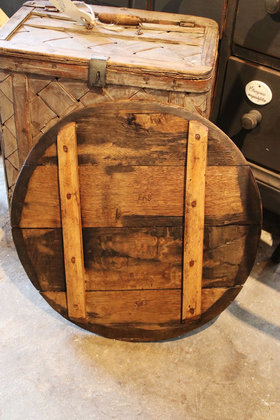 Svensk 1800 tals rund træplade i træ med en rigtig fin patina. Fin som bordplateau / bakke. Dia.: 46cm.