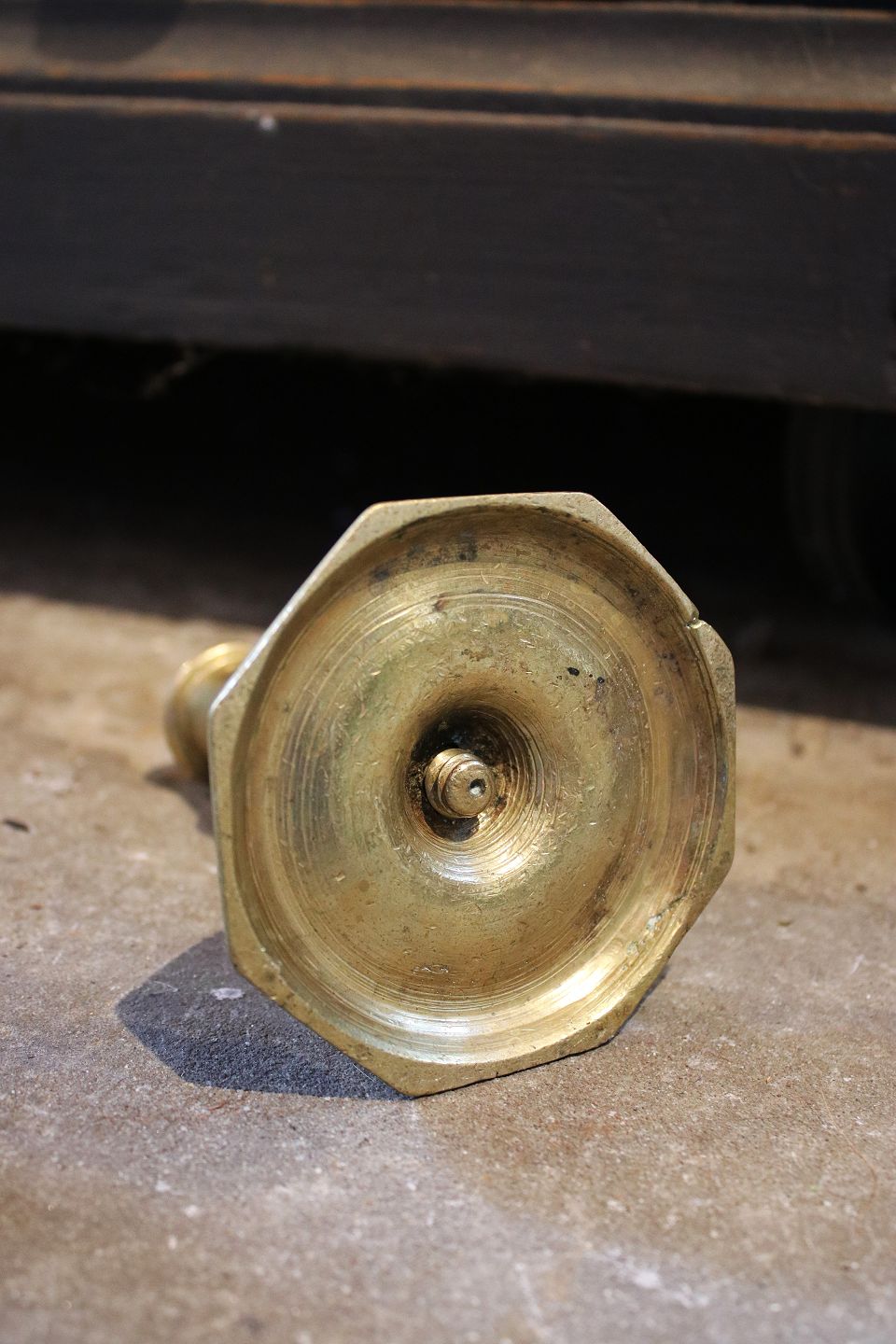 1700 tals lysestage i messing med en rigtig fin patina. Højde: 12,5cm.