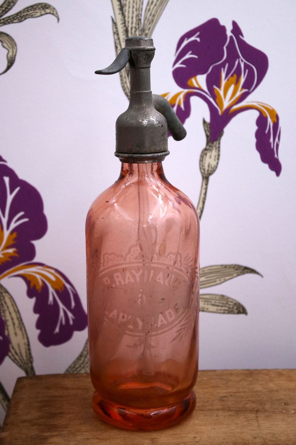 Decorative, rare French mini glass siphon from the beginning of the 20th century in pink colored glass...