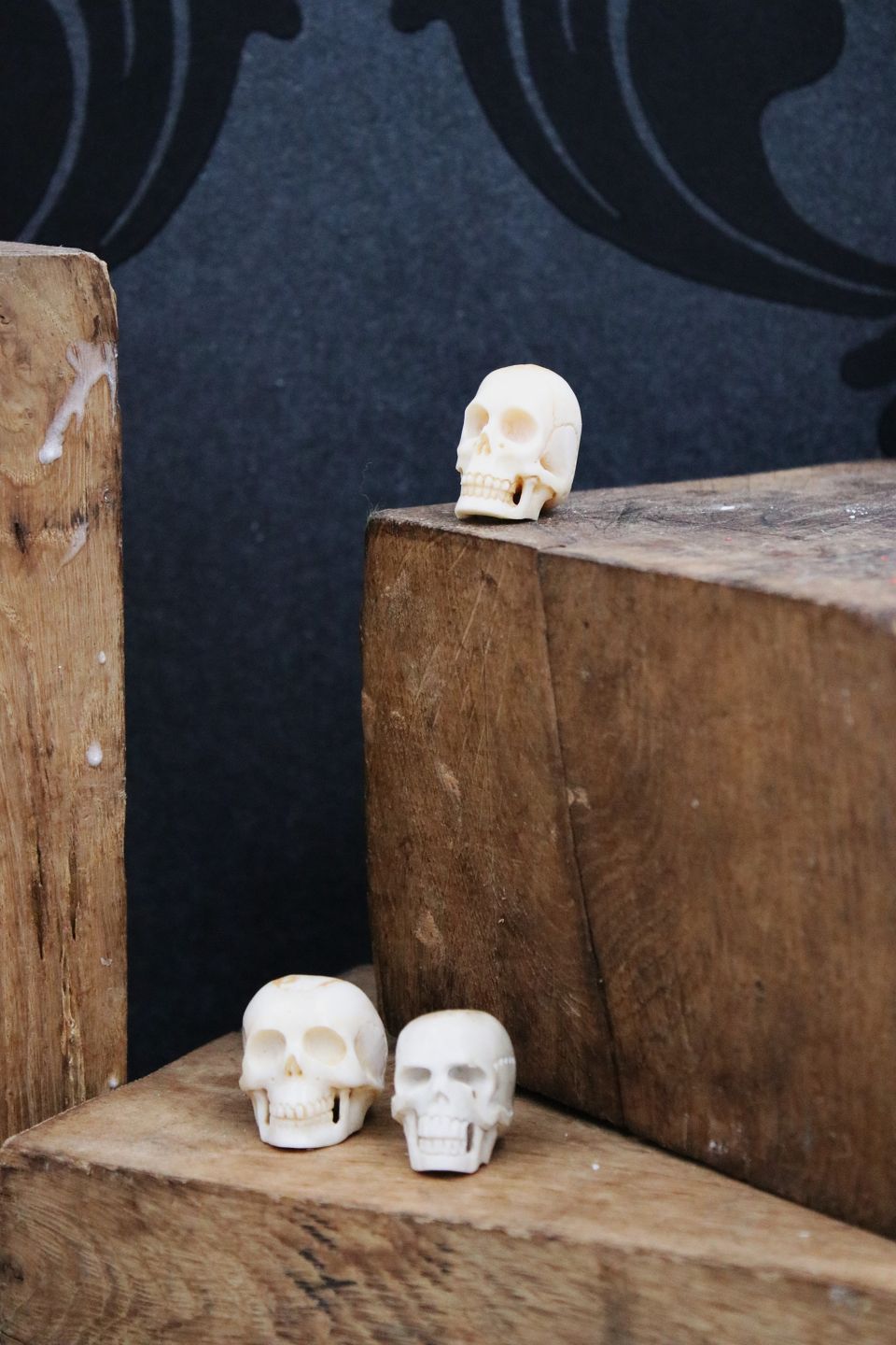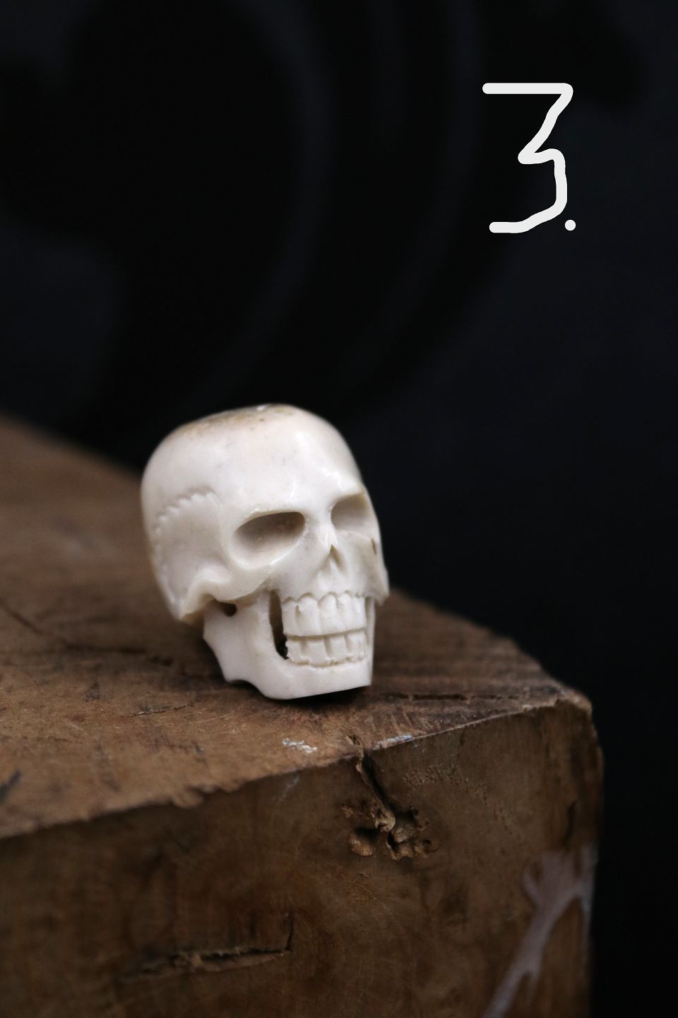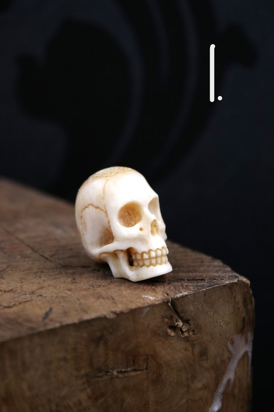 Old, decorative mini skulls carved in horn / bone.