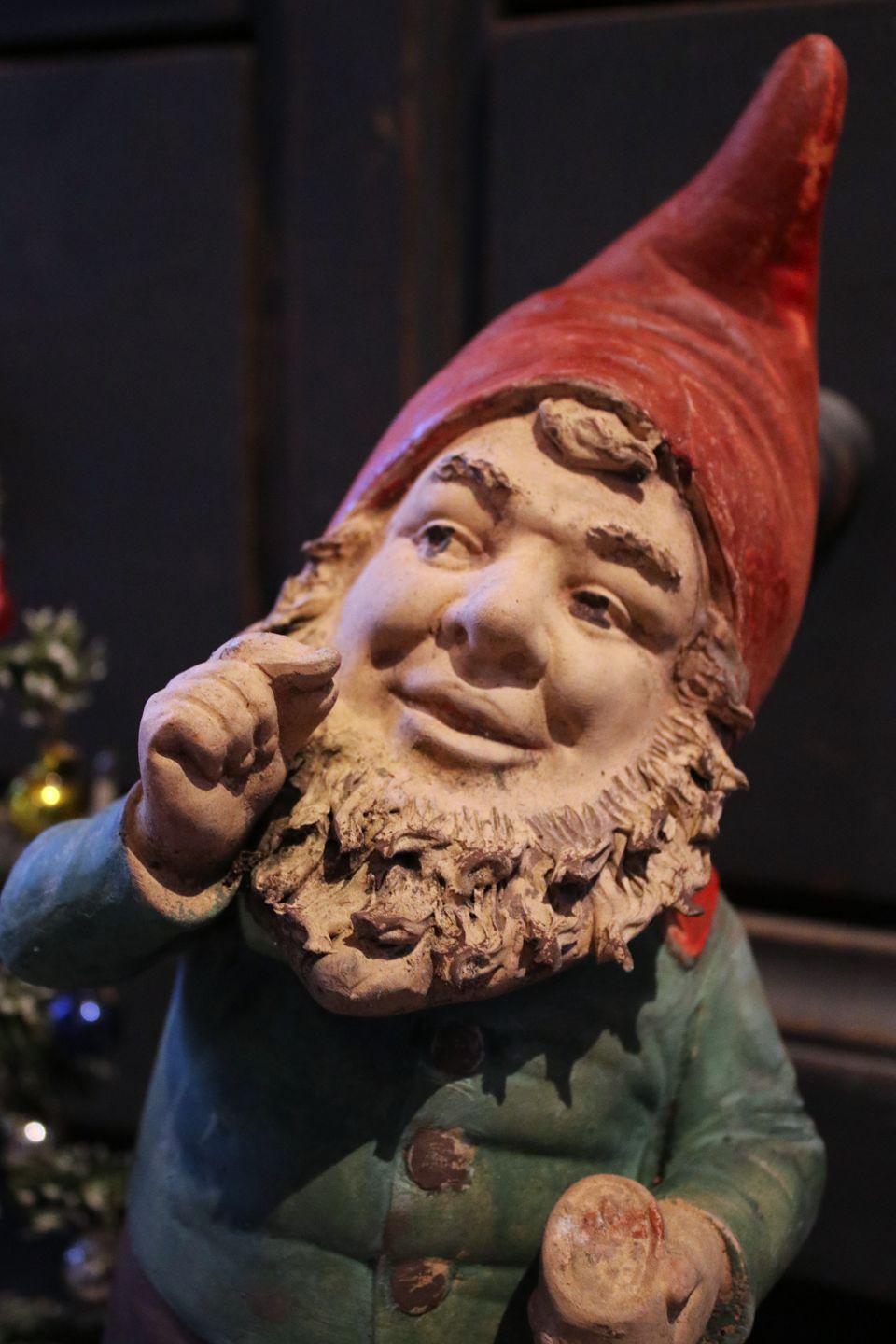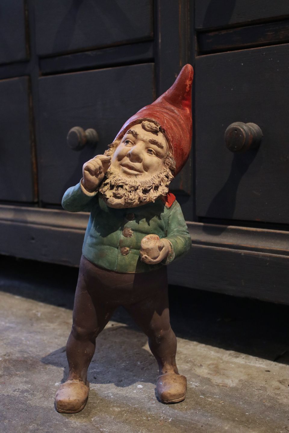 Antik terrakotta nisse med gammel bemaling og en fin patina. Højde: 36,5cm. Emne nummer: Antik terrakotta nisse nr.1