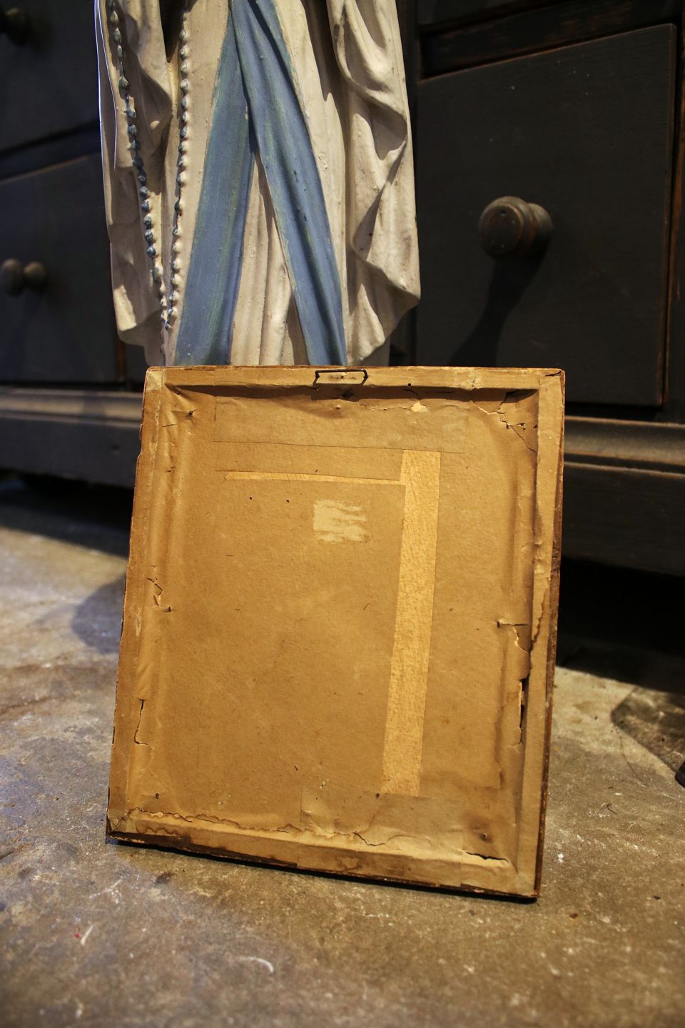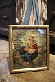 Antique hand-painted watercolor painting of Madonna with the Child Jesus, framed in an old silver frame with fine patina. Measurements: 22x19cm.