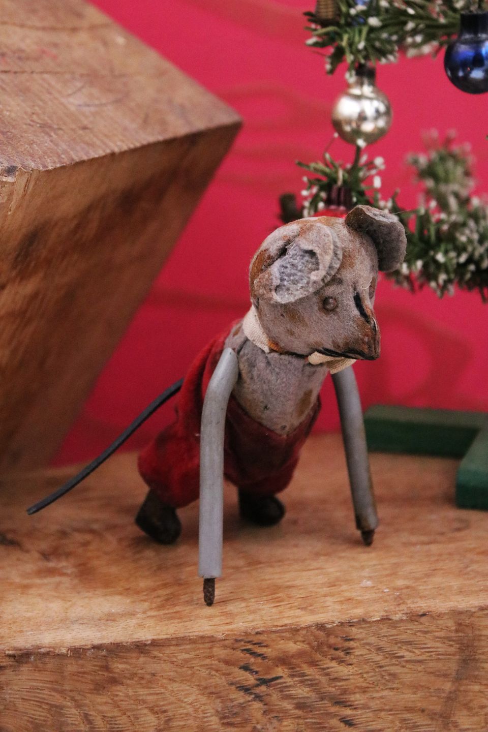 Gammel "mekanisk" (mangler nøgle) "jule-mus" i metal