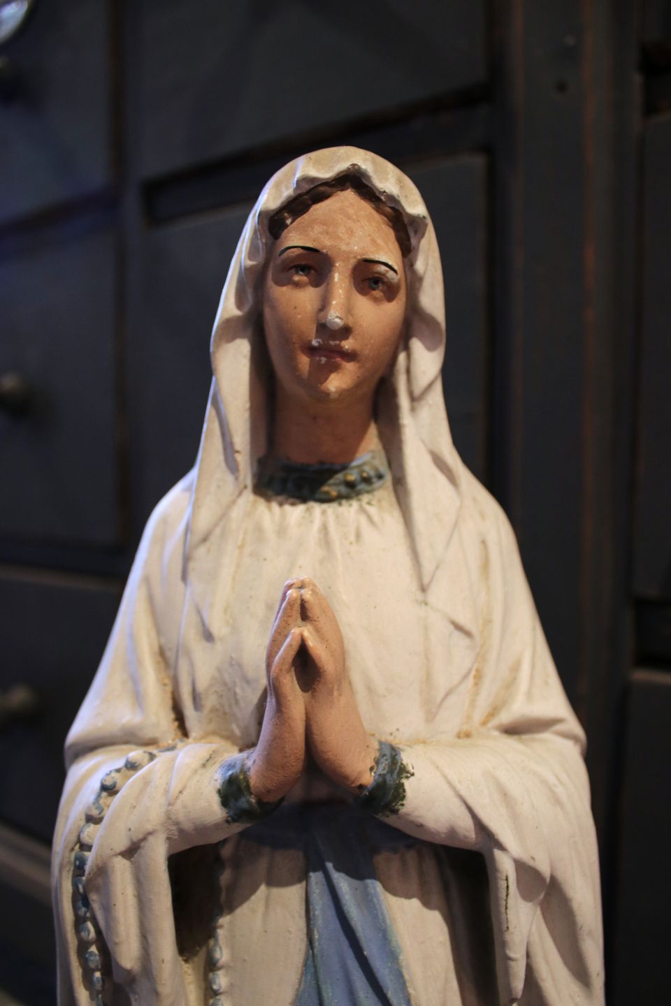 Fine, old French Madonna figure in painted plaster with a fine old patina...