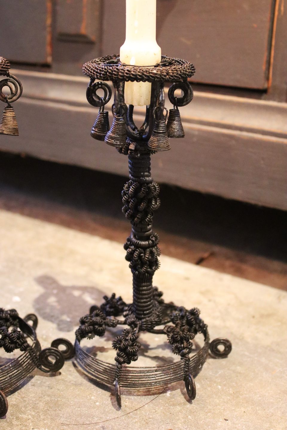 A pair of antique candlesticks in Fil de Fer (metal work)