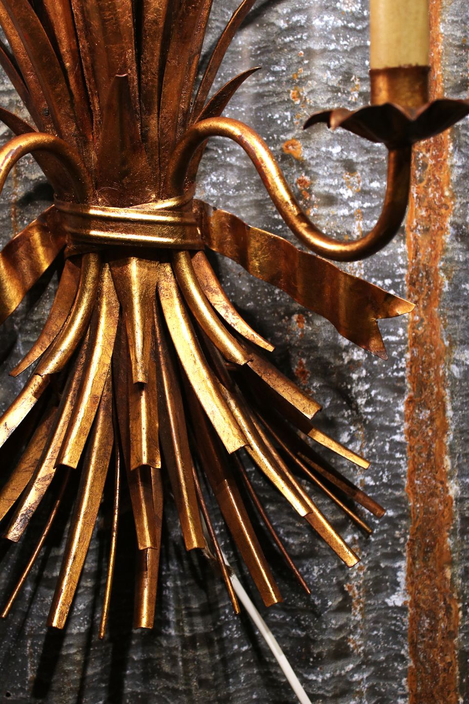 Stor forgyldt Hans Kögl metal væglampe (Buket af kornneg) i Hollywood Regency stil fra 60érne. Væglampen har 2 lyskilder og måler: