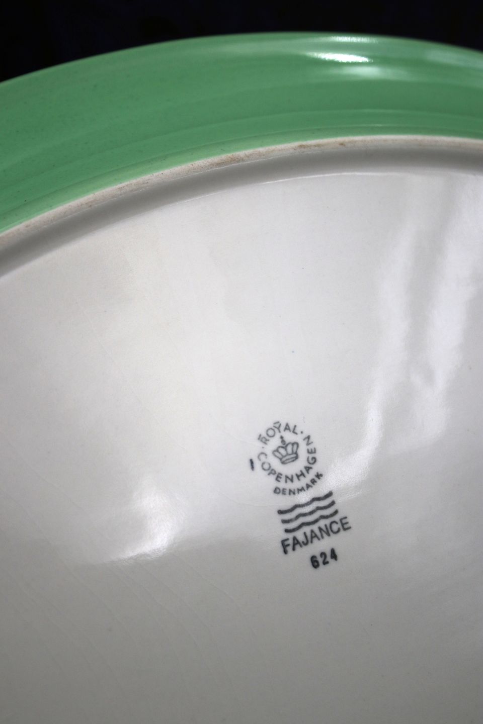 Old oval Ursula faience serving dish / plate from Royal Copenhagen designed by Ursula Munch-Petersen with green glaze.