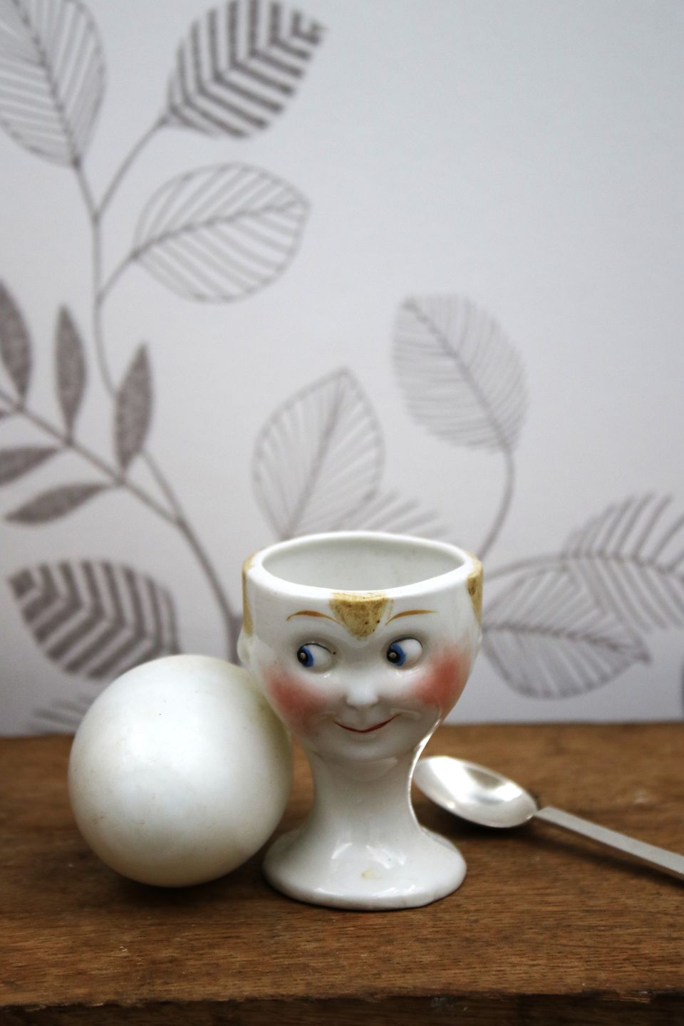 Old egg cup from the 1930s in porcelain with a painted funny face. Height: 6.5cm. Item number: Æggebægre nr.10