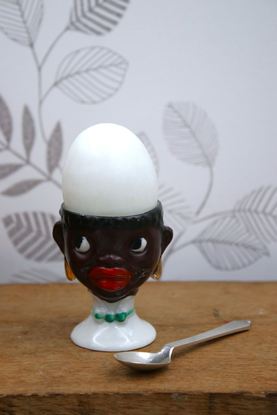 Old egg cup from the 1930s in porcelain with a painted funny face. Height: 6.5cm. Item number: Æggebægre nr.2
