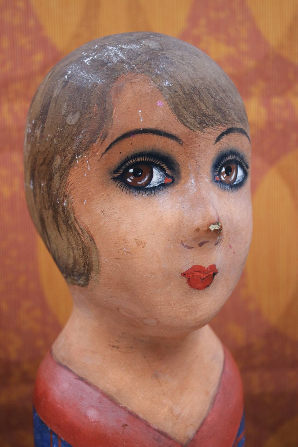 i bemalet pap-maché med en fin gammel patina. H: 23cm.