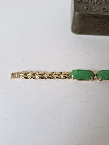 Smukt armbånd i 18 kt guld med jade Stemplet: THC - 75% - armbåndet er testet hos Vitus Guld for lødighed Længde 18 cm. Bredde 7 mm.