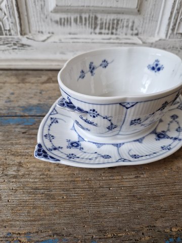 Royal Copenhagen Musselmalet riflet sauceskål uden låg No. 207, 2. sortering Højde 8 cm. Længde 24 cm. Produceret mellem 1898-1923