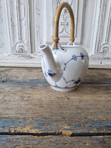 Royal Copenhagen Musselmalet riflet tekande med bambus hank uden låg No. 140, 1. sortering Højde 11,5 cm. Længde 18 cm.