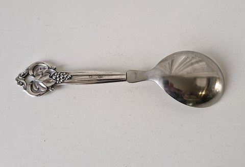 Serving spoon in silver and steel decorated with bunch of grapes. Stamp: Cohr - the three towers. Length 21.7 cm.