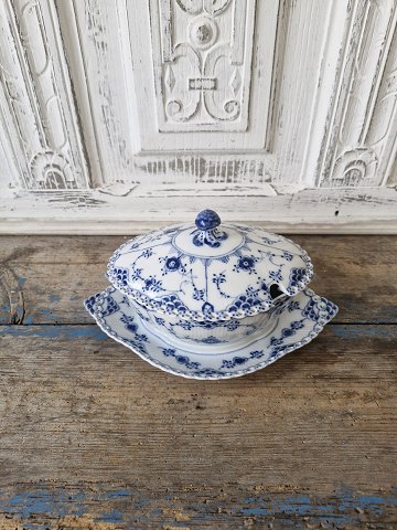 Royal Copenhagen Blue Fluted full lace sauce bowl with lid No. 1106, Factory second Measurements 16 x 24 cm. Height 13 cm.