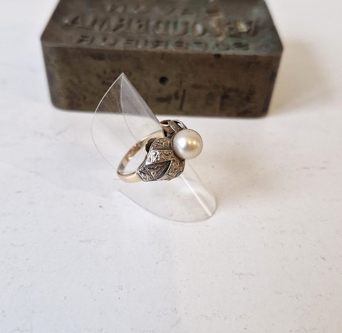 Vintage ring in 14 kt red and white gold with beautiful akoya pearl. The ring is not hallmarked. It is tested for 18 kt. Ring size 49
