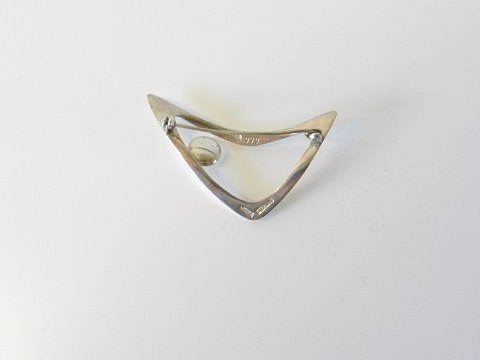 Sjælden Just Andersen broche i sterling sølv. Flot moderne design. Stemplet Just A, Sterling, no. 777 Mål 2,7x5,5cm.